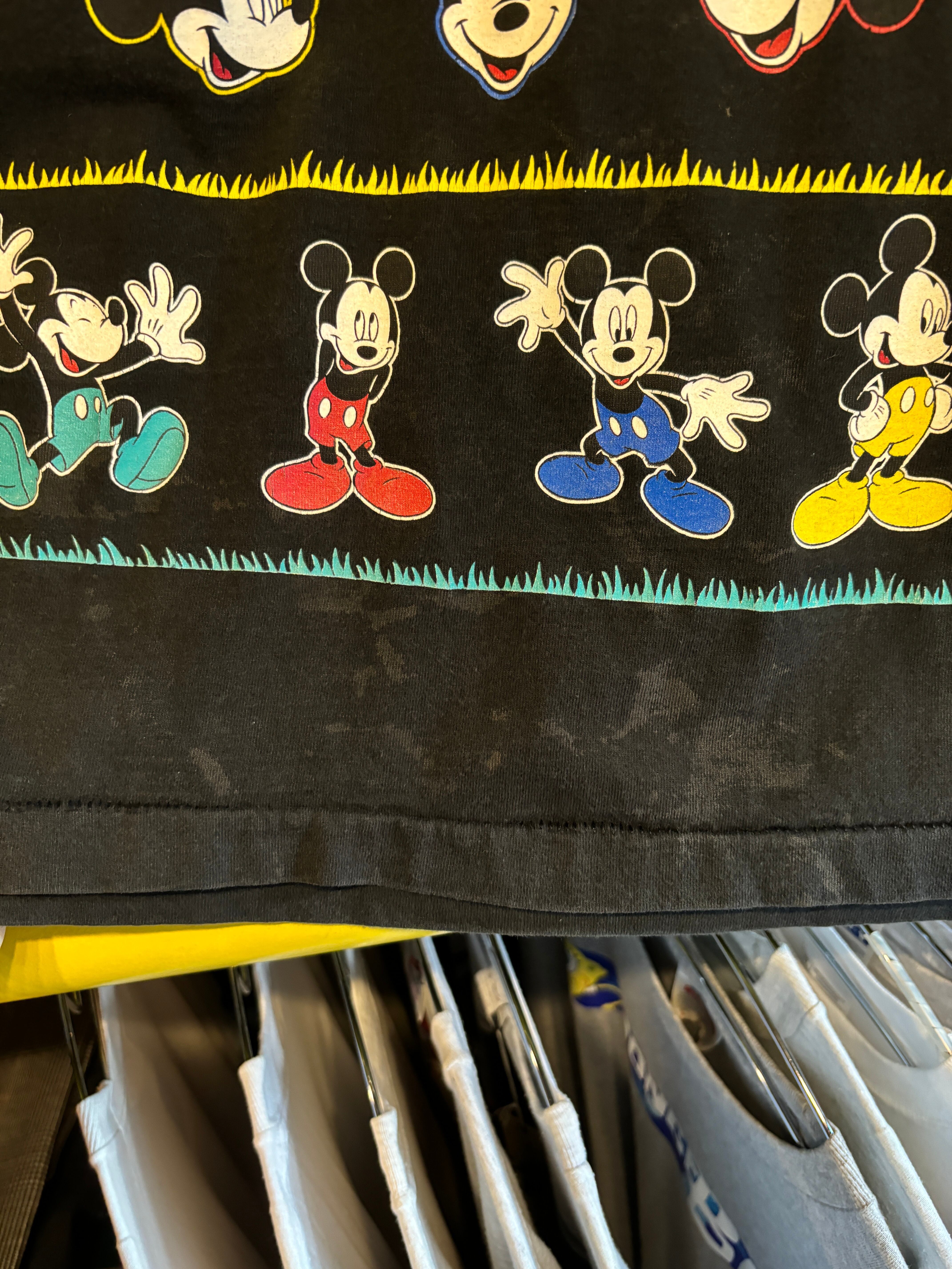90年代のディズニーからの特別な一枚、Mickey Mouseがあしらわれています。ビッグシルエットで、ルーズなスタイルが流行を感じさせます。デザインはフェード感があり、当時の魅力をそのままに。カジュアルなコーディネートにもピッタリです。