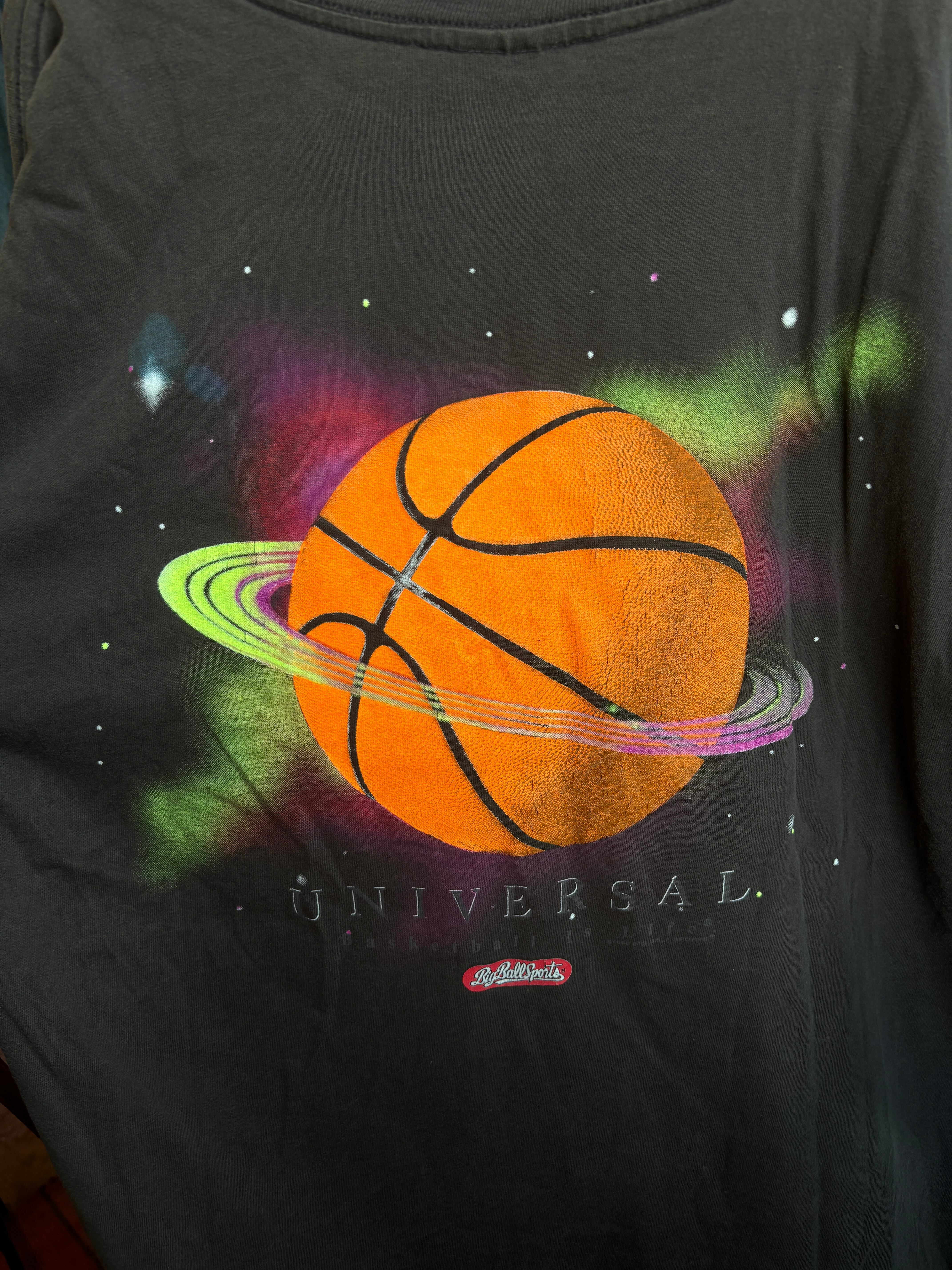 宇宙×バスケというユニークさが光る、90'~00'のアメリカ製 Big Ball SportsのグラフィックTシャツ。