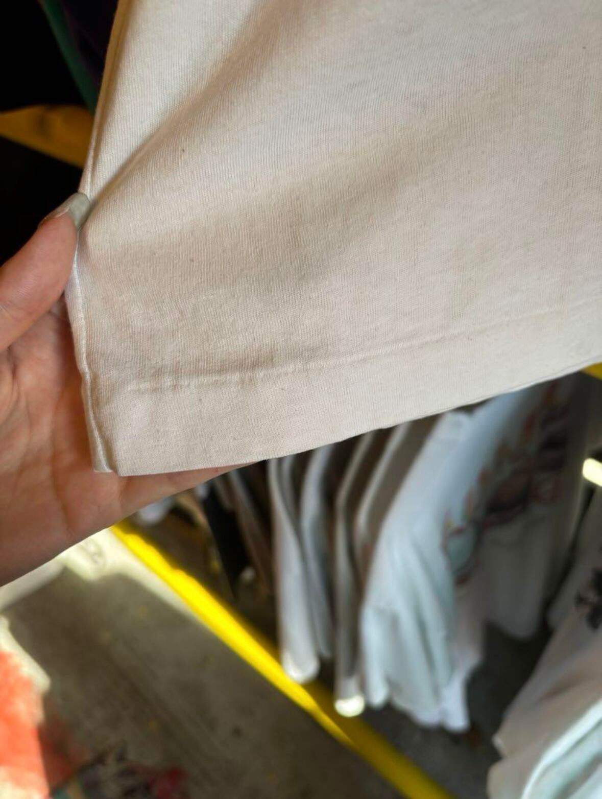 タグが欠損しているため詳細は不明ですが、柔らかめの生地でゆったり着られるサイズ感です。