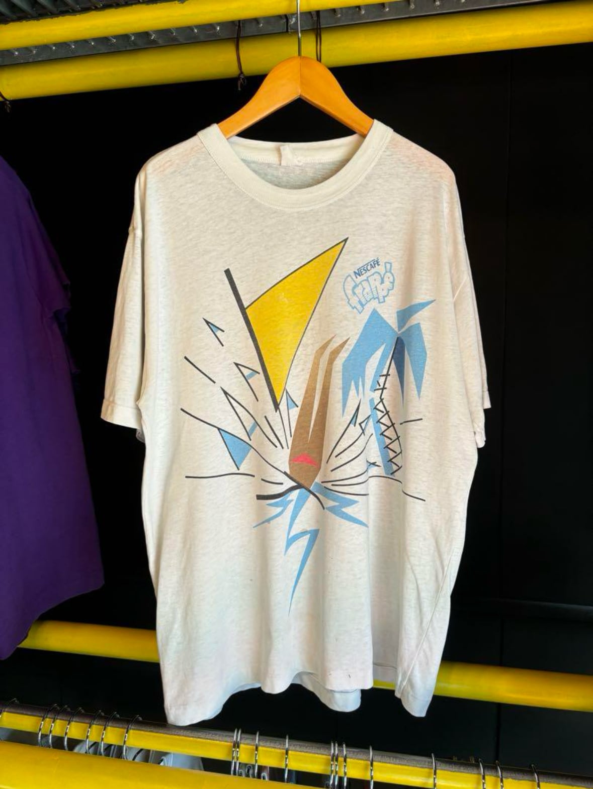 90年代の空気感が漂う、NESCAFÉ frappéのロゴ&グラフィックTシャツ。