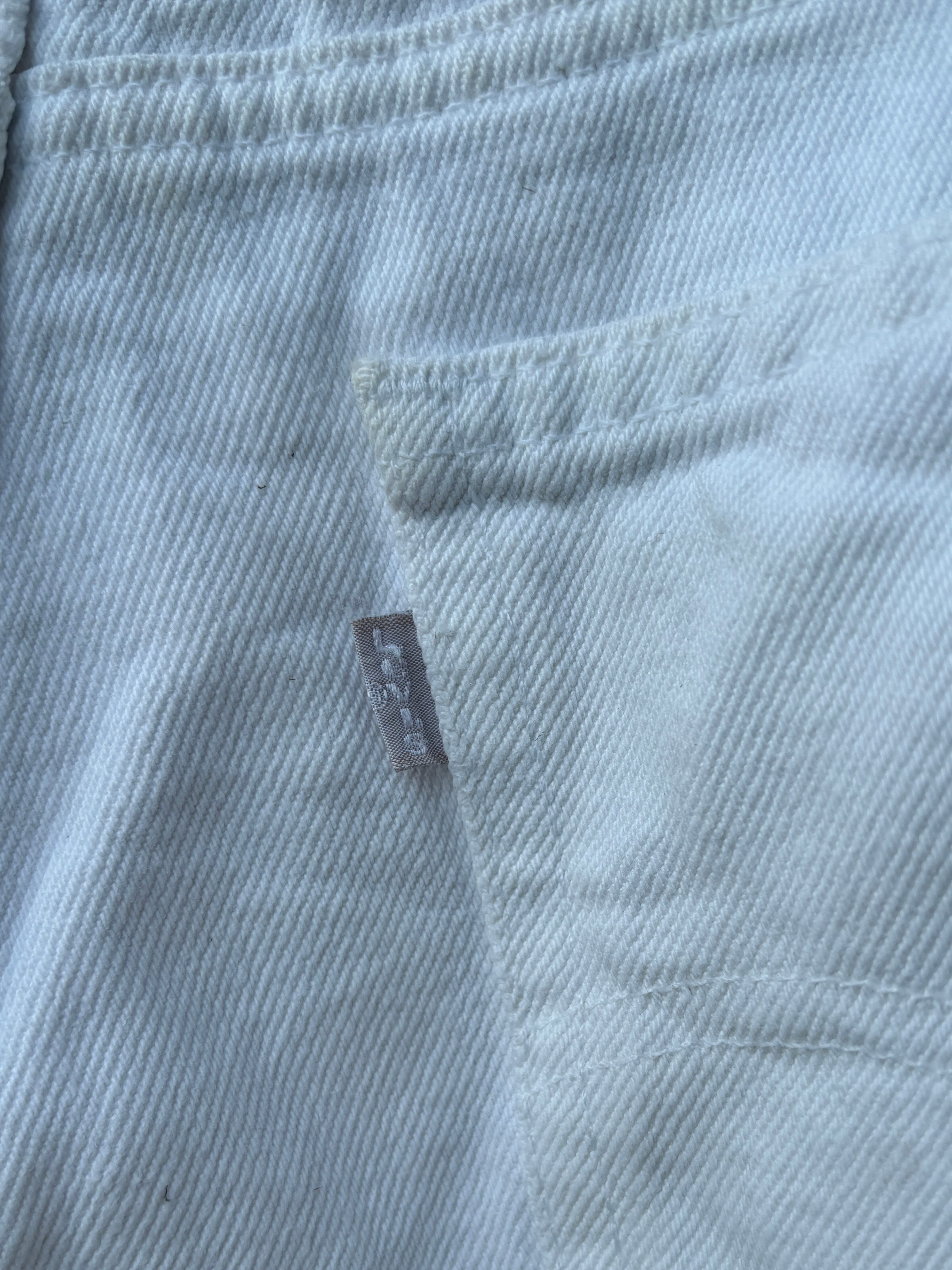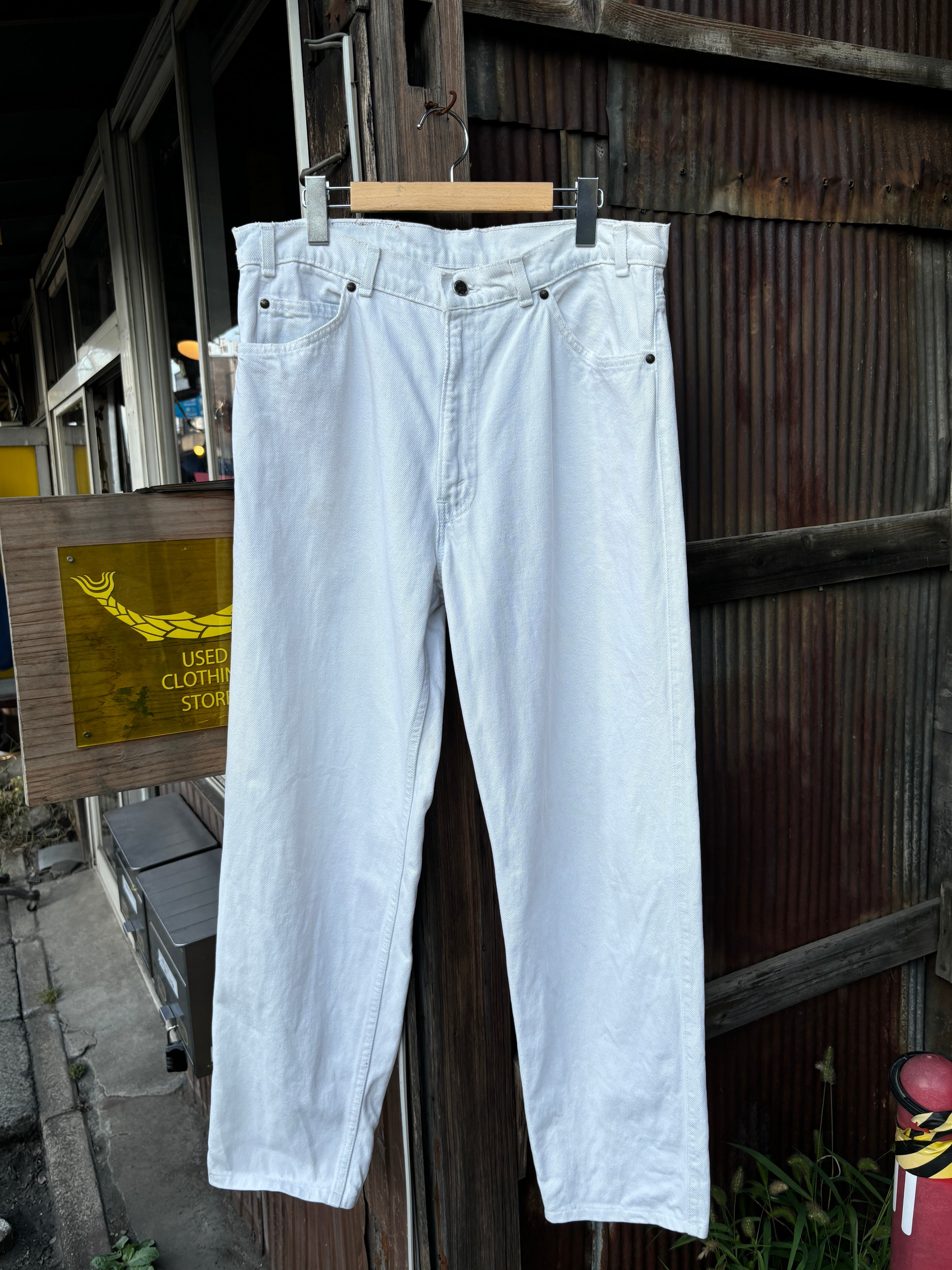 所々に見られる薄い色移りや小さな汚れは、古着ならではの風合いとして味わい深さをプラス。清潔感のあるホワイトデニムだからこそ、あえてラフに着崩すスタイルもおすすめです。Tシャツと合わせて爽やかに、シャツと合わせてクリーンに。幅広いコーディネートで活躍します。