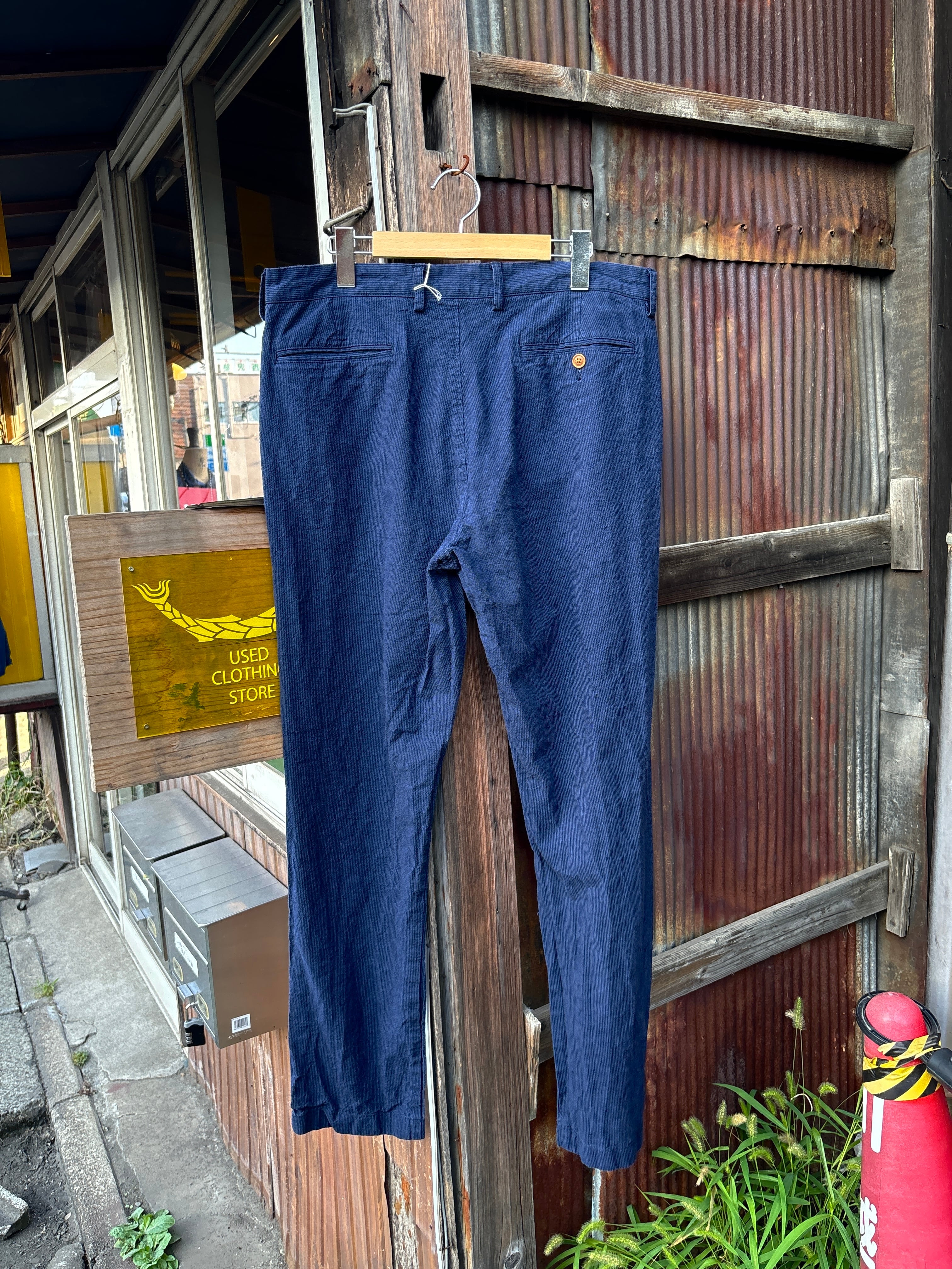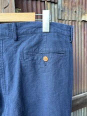 J.CREWから届いた、落ち着いた色味が上品なネイビーのコットンリネンパンツ。