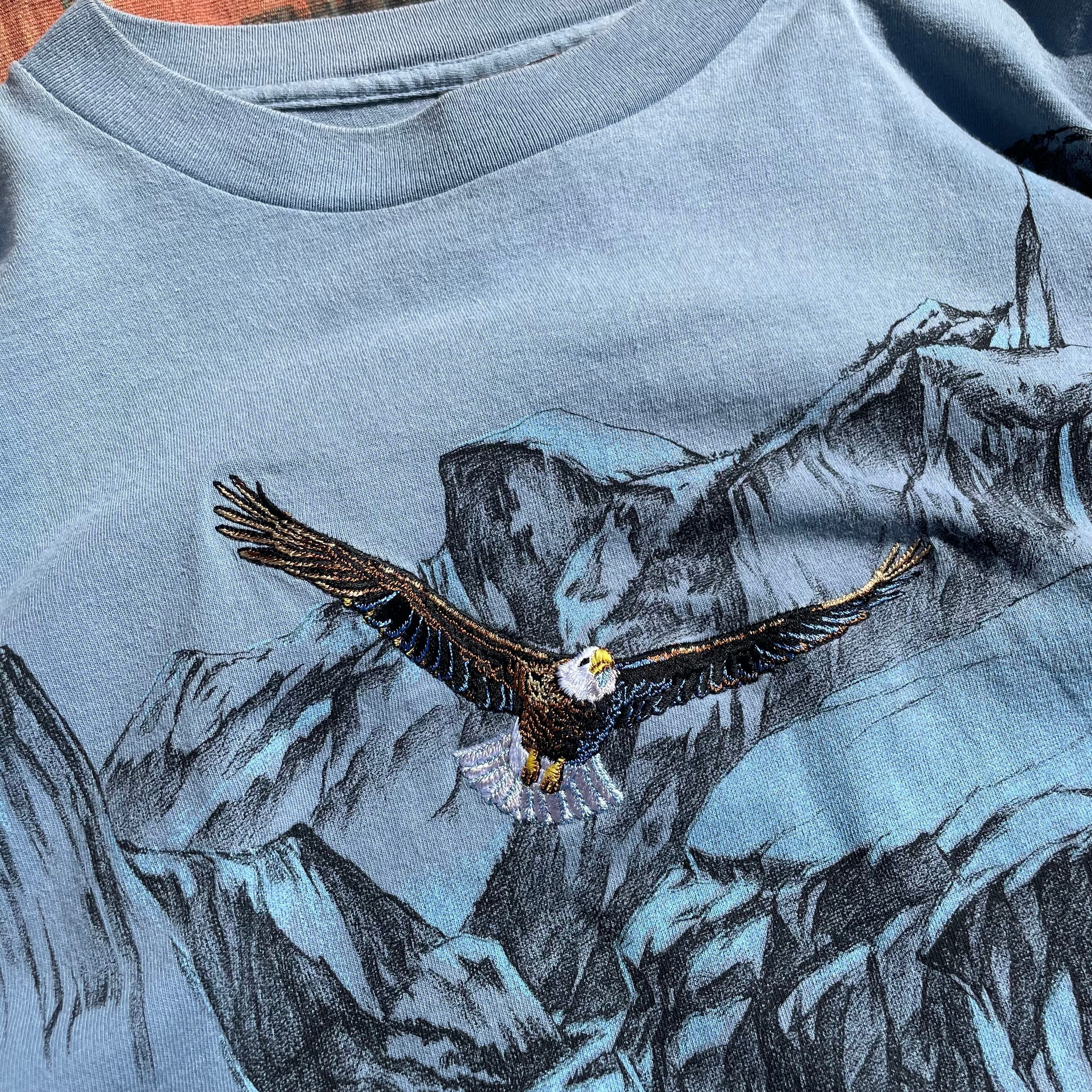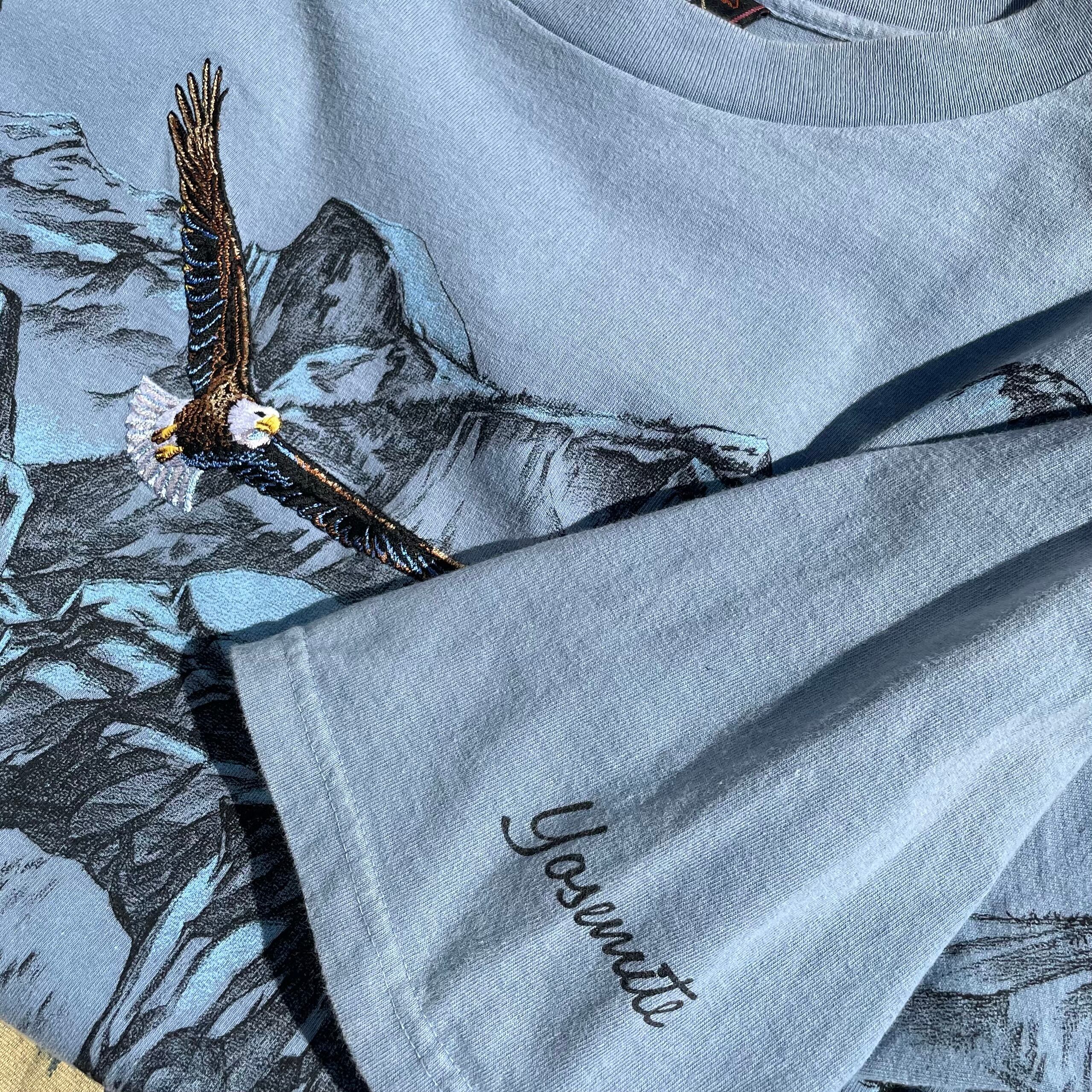 Yosemite National Park, located in the majestic nature and surrounded by wildlife in San Francisco, USA, shares its name with a character from Looney Tunes, so there might be a connection. This wonderful place is captured in art, and with the eagle embroidered on it, this piece would look impressive even if framed and displayed.